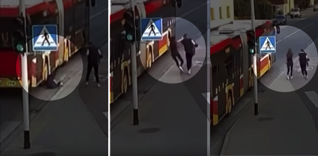 أظهر مقطع فيديو لكاميرا مراقبة في أحد شوارع بولندا، حادثة غريبة من نوعها، إذ قامت فتاة بدفع صديقتها باتجاه حافلة متحركة فكادت أن تفقد حياتها. وبعد أن دفعتها ممازحة، شعرت الفتاة بالخوف على صديقتها، وحاولت مساعدتها على الوقوف.