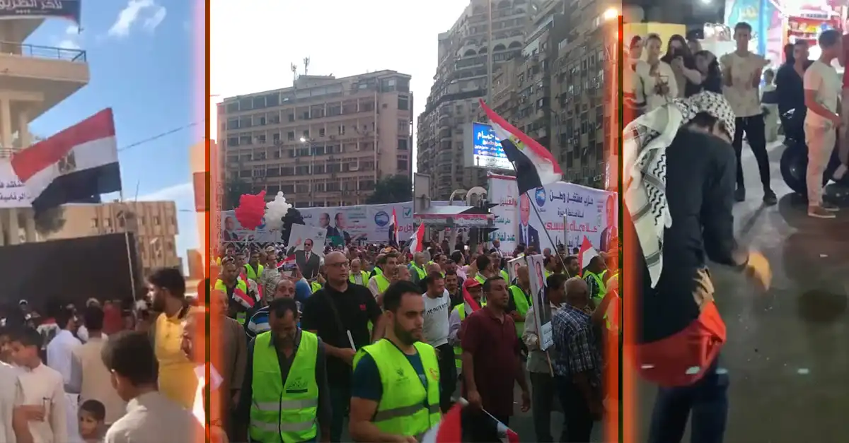 خرجت مسيرات حاشدة في شوارع المدينة ، رفعت خلالها الأعلام المصرية وصور الرئيس السيسي، مرددة هتافات التأييد له.